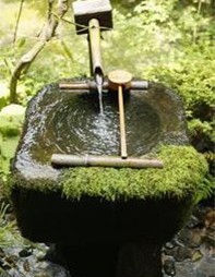 日式洗手盆,親近大自然的感覺,這水就好像是從山上引下來的山泉水。