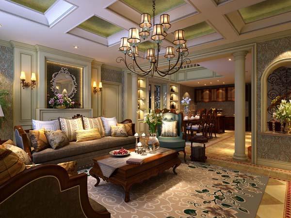 歐美風(fēng)格裝修設(shè)計(jì):開(kāi)放式的客廳設(shè)計(jì),客廳和餐廳完美地融合在一起,空間上并不會(huì)給人擁擠的感覺(jué),反而顯得大氣十足??蛷d的擺設(shè)搭配地板和各種家具,顯得溫暖舒心,墻面的裝飾和吊頂設(shè)計(jì),讓客廳的裝飾顏色的造型合理搭配,高貴華麗的感覺(jué)不言而喻。