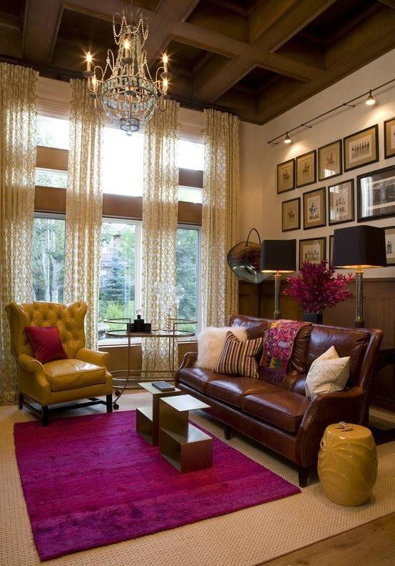 歐美風(fēng)格裝修設(shè)計(jì):酒紅色的沙發(fā)配上原木地板,溫馨的感覺(jué)別有一番滋味。