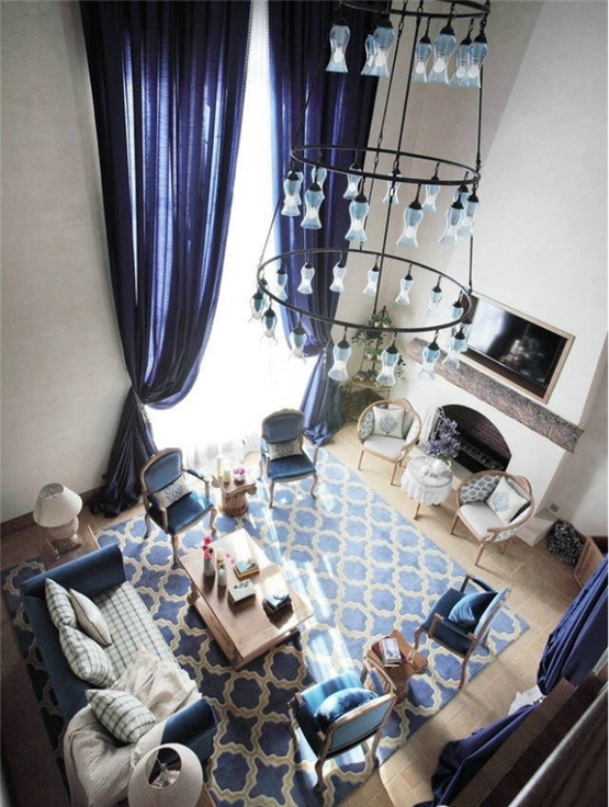 歐美風(fēng)格裝修設(shè)計(jì):藍(lán)色的冷調(diào)子,給人一種孤傲的深沉,經(jīng)過(guò)排列組合的設(shè)計(jì),卻顯得清新自然。
