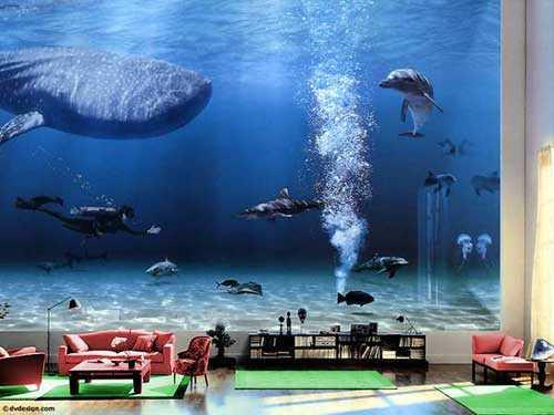 客廳擺幾架盆景,小市民的品位;布置一口大魚缸,白領的水平;像比爾·蓋茨的書房那樣,二十幾米高直上直下,整整一面墻,都是龐大的水族館,那才叫極品消 遣、才叫“酷”哩!蔚藍色的海洋被裁成了一道童話般的背景:銀沙綠藻,一片澄明,海豚、白鯊、鯨魚……悠閑地游蕩著,似乎揮手就能招到眼前來。