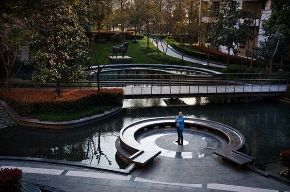 30歲的企業(yè)家丹尼爾·張?jiān)诩抑行^(qū)的花園內(nèi)。丹尼爾的家坐落在天價(jià)樓盤”湯臣一品內(nèi)。