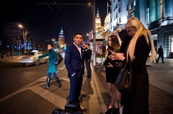 30歲的K·P·Yue與幾名外國(guó)女友一起在外灘等出租車。