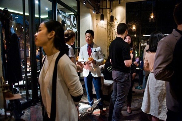 上海,Pistacchio咖啡店內(nèi)正在舉行的意大利手工定制服裝展示會(huì)。