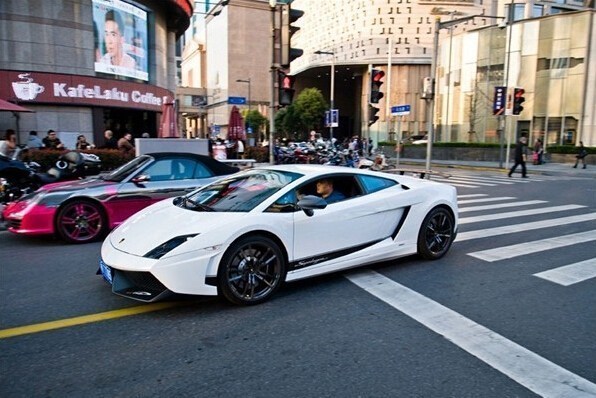 南京西路附近駛過(guò)的蘭博基尼。