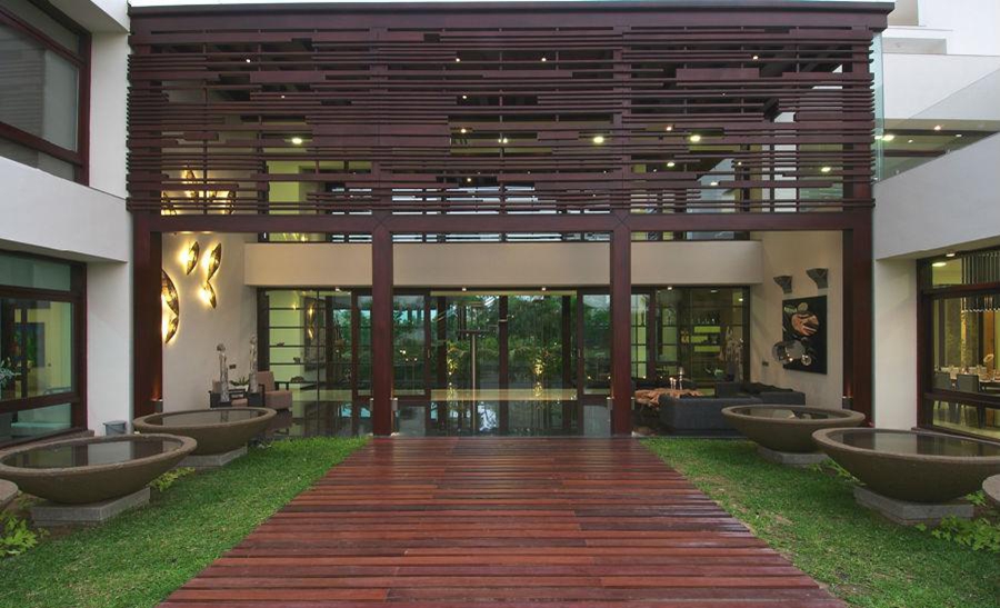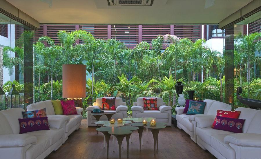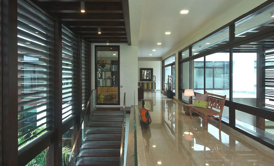 “室內設計是經過深思熟慮的,全部使用定制家具,注重設計的細節。內飾的顏色和裝飾品使用印度歡快的元素,期望給業主帶來一個歡樂的房子,打破清醒。原畫和藝術品空間的補充,更能體現“樊語”藝術”。